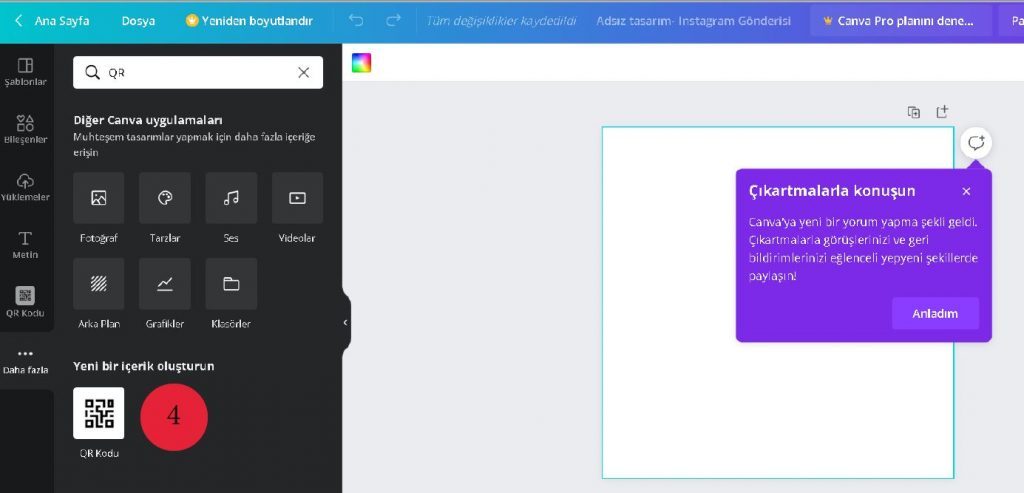 5. Arama kısmına QR yazın.