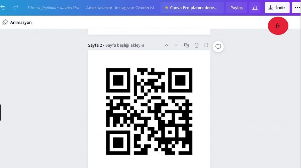 8. QR kodunuz oluşturuldu. Sağ üst sekmeden indir butonuna tıklayarak QR kodunuzu indirebilirsiniz.